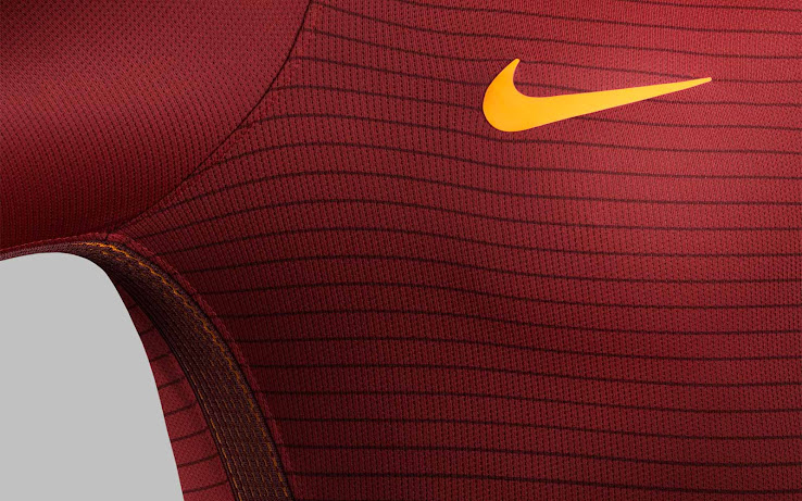 Das Nike-Logo, das gegenüber des heutigen Rom-Wappens sitzt (das Auswärtstrikot weist einen Rückblick auf das kultige Lupetto-Logo auf), ist wieder einmal orange - wie der Großteil des Kragens des Rom 16-17 Trikots.