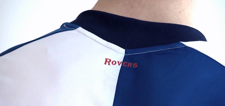 Das neue 2017-2018 Heimtrikot zeichnet sich durch das traditionelle geteilte Design des Klubs aus. Das Trikot weist den Schriftzug Rovers auf der Rückseite des Kragens auf.