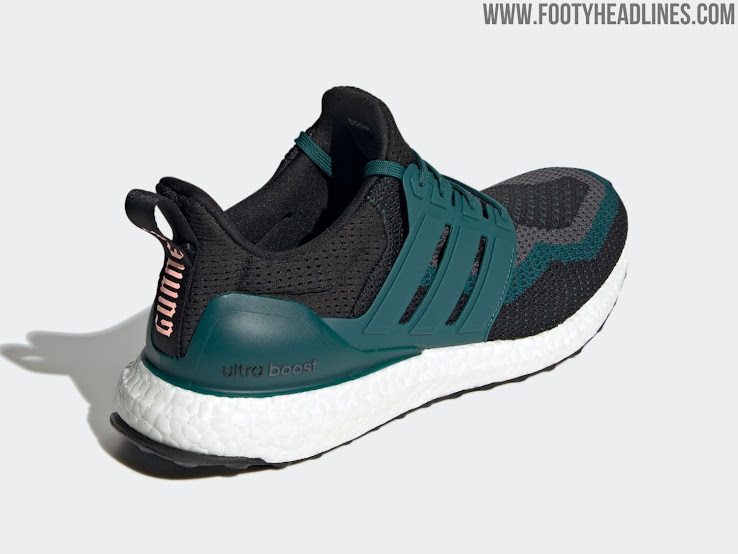 Der Arsenal Ultra Boost DNA kombiniert die Farben Schwarz, Grün und Grau mit rosa Details.
