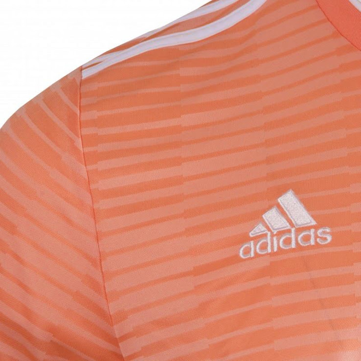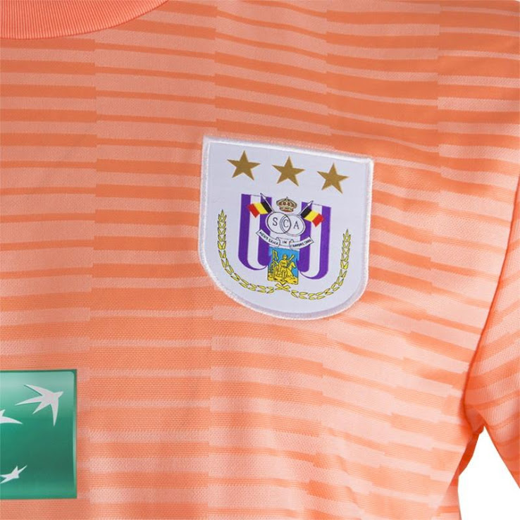Das neue Anderlecht-Auswärtstrikot, das auf dem Adidas Condivo 18 Teamwear-Trikot basiert, eines der bisher am häufigsten verwendeten, ist größtenteils pfirsichfarben mit weißen Details.