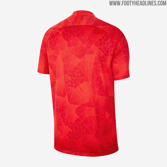 Das Nike Kanada 2020 Trikot, das einen schlichten Look einführt, ist vollkommen rot mit einem subtilen, vom Ahornblatt inspirierten, geometrischen, allumfassenden Druck.