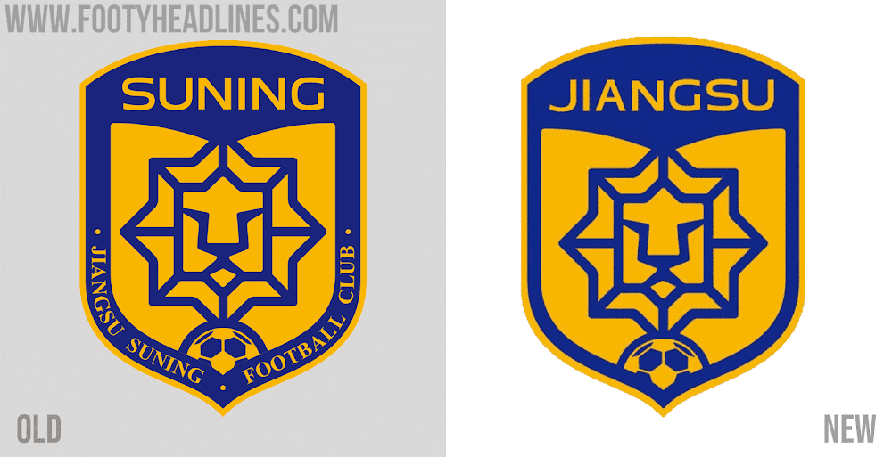 Das neue Logo des Jiangsu FC kommt ohne alle Suning-Elemente aus, um den Regeln zu entsprechen - der Suning-Schriftzug oben wurde durch "Jiangsu" ersetzt, während der Schriftzug des Jiangsu Suning Football Club unten komplett entfernt wurde.