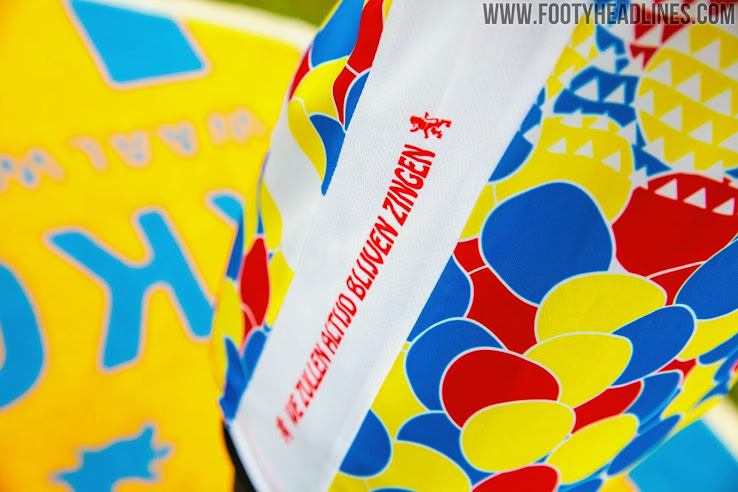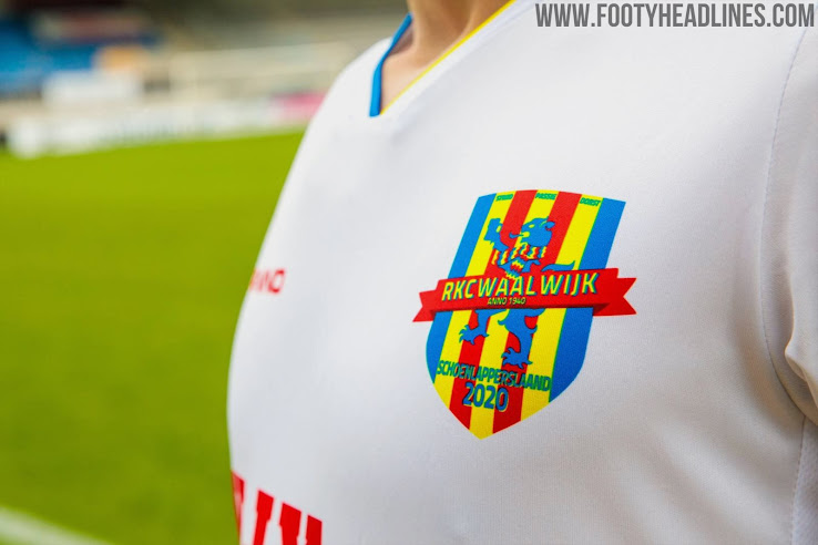 Der Slogan ist im Kragen positioniert, das Schoenlapperslaand-Logo auf der Rückseite des Trikots. Auf der rechten Seite des neuen RKC Waalwijk 2020 Karneval-Fußballtrikots ist der Spruch "We Will Always Keep Singing" angebracht, der sich auf unsere treuen Fans bezieht. Auf der linken Seite befindet sich der Slogan "Fight. Passion. Pride." (Kampf. Leidenschaft. Stolz), mit einer Anspielung auf "Fight. Passion. Pride.".