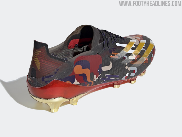 Die 'Black / Gold / Red' adidas X Ghosted AG Fußballschuhe sind technisch identisch mit der Inaugural Edition.
