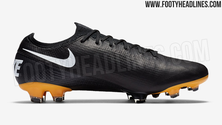 In technischer Hinsicht basieren die neuen, schwarz / weiß / goldgelben Nike Mercurial Vapor XIII Fußballschuhe auf den regulären synthetischen Nike Mercurial Vapor 13 Fußballschuhen mit einem wichtigen Zusatz - sie haben eine Schicht Känguruleder.